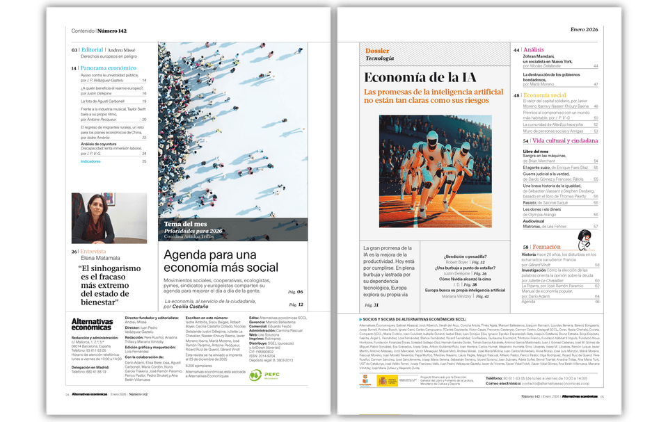 Alternativas económicas es una revista mensual con edición en formato papel y digital que aborda los temas económicos con rigor, independencia y afán didáctico, siempre con la mirada puesta en el interés de la ciudadanía y abogando por la búsqueda de una comprensión más profunda y justa de la economía.